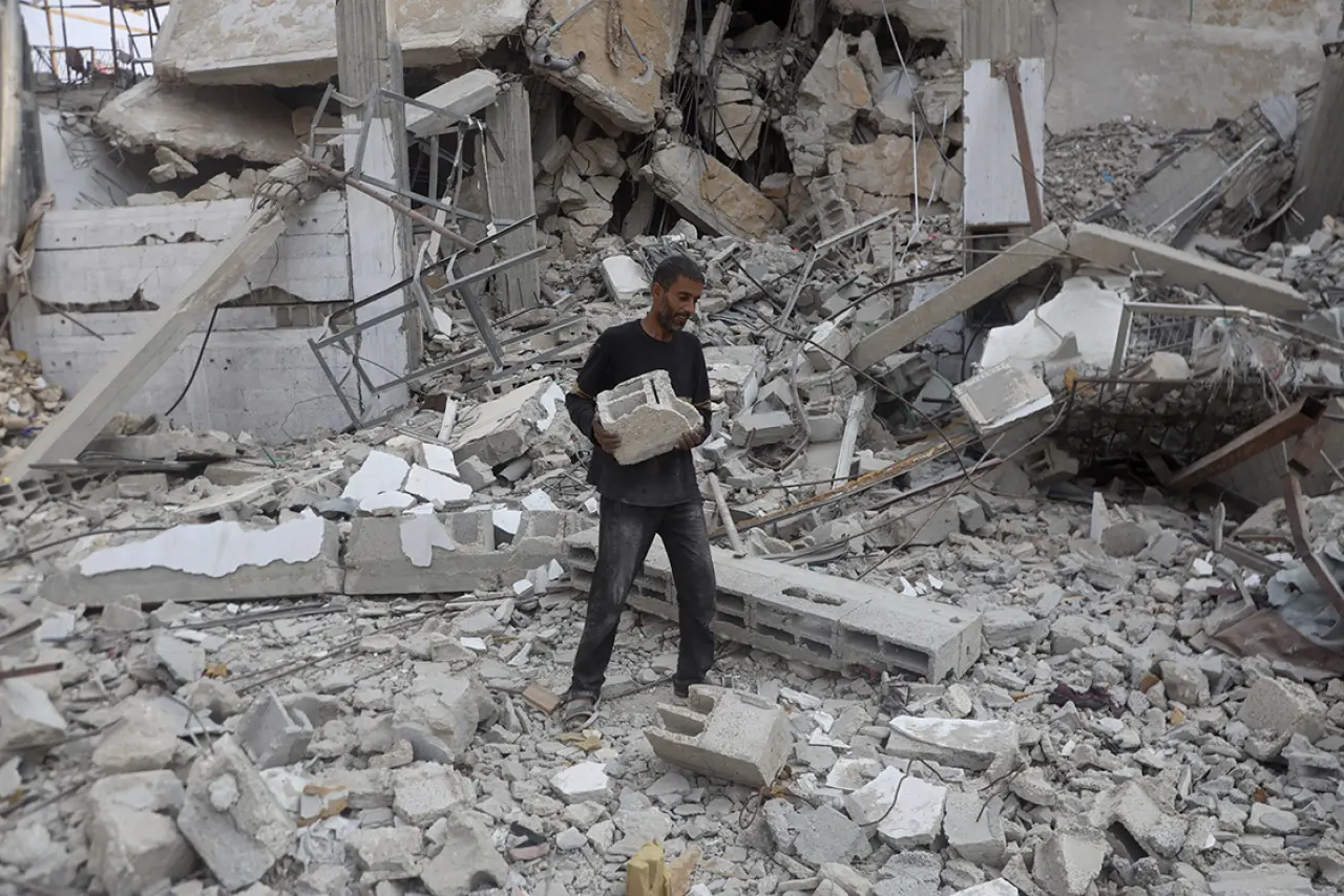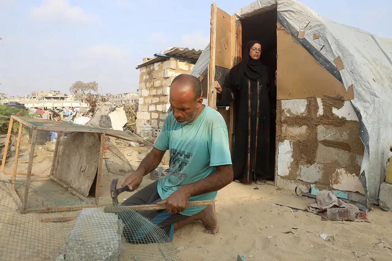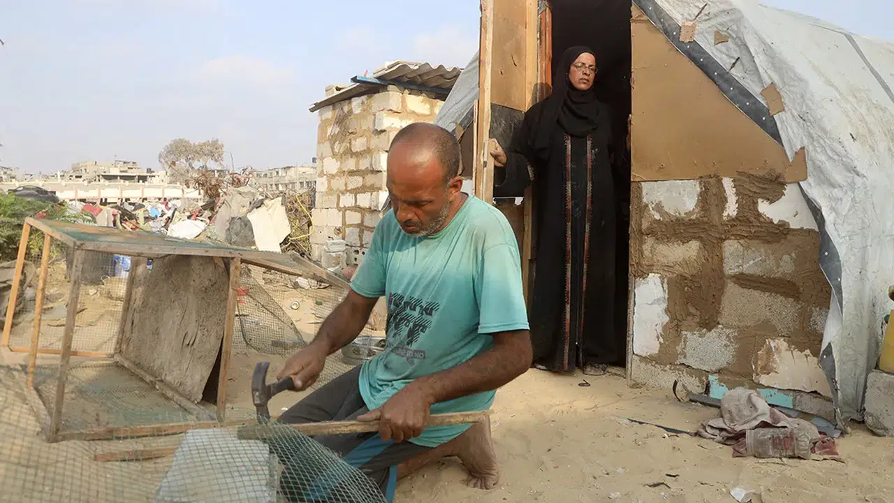 En temel ihtiyaç olan barınma sorunlarını çözmek için harekete geçen Filistinliler, yıkıntılardan topladıkları tuğlalar ve çamurdan elde ettikleri ilkel sıvalarla barınak alanları oluşturmaya çalışıyor.
