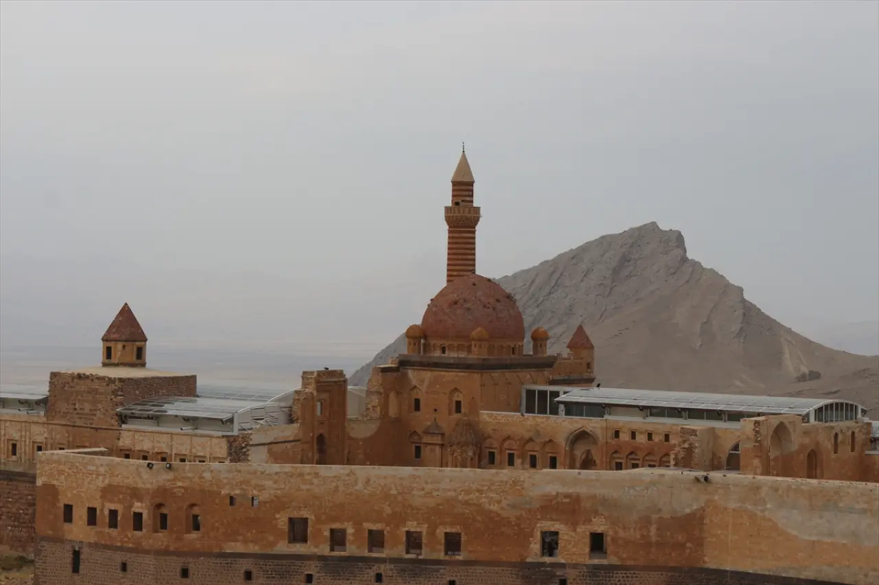 Ağrı'nın Doğubayazıt ilçesinin güneyinde bir tepe üzerine inşa edilmiş olan İshak Paşa Sarayı, görkemli mimarisiyle dört mevsim boyunca ziyaretçilerini ağırlamaya devam ediyor. Osmanlı İmparatorluğu'nun Lale Devri döneminde yapıldığı bilinen ve UNESCO Dünya Miras Geçici Listesi'nde yer alan bu anıtsal yapı, ara tatil döneminde rekor düzeyde ilgi görüyor.