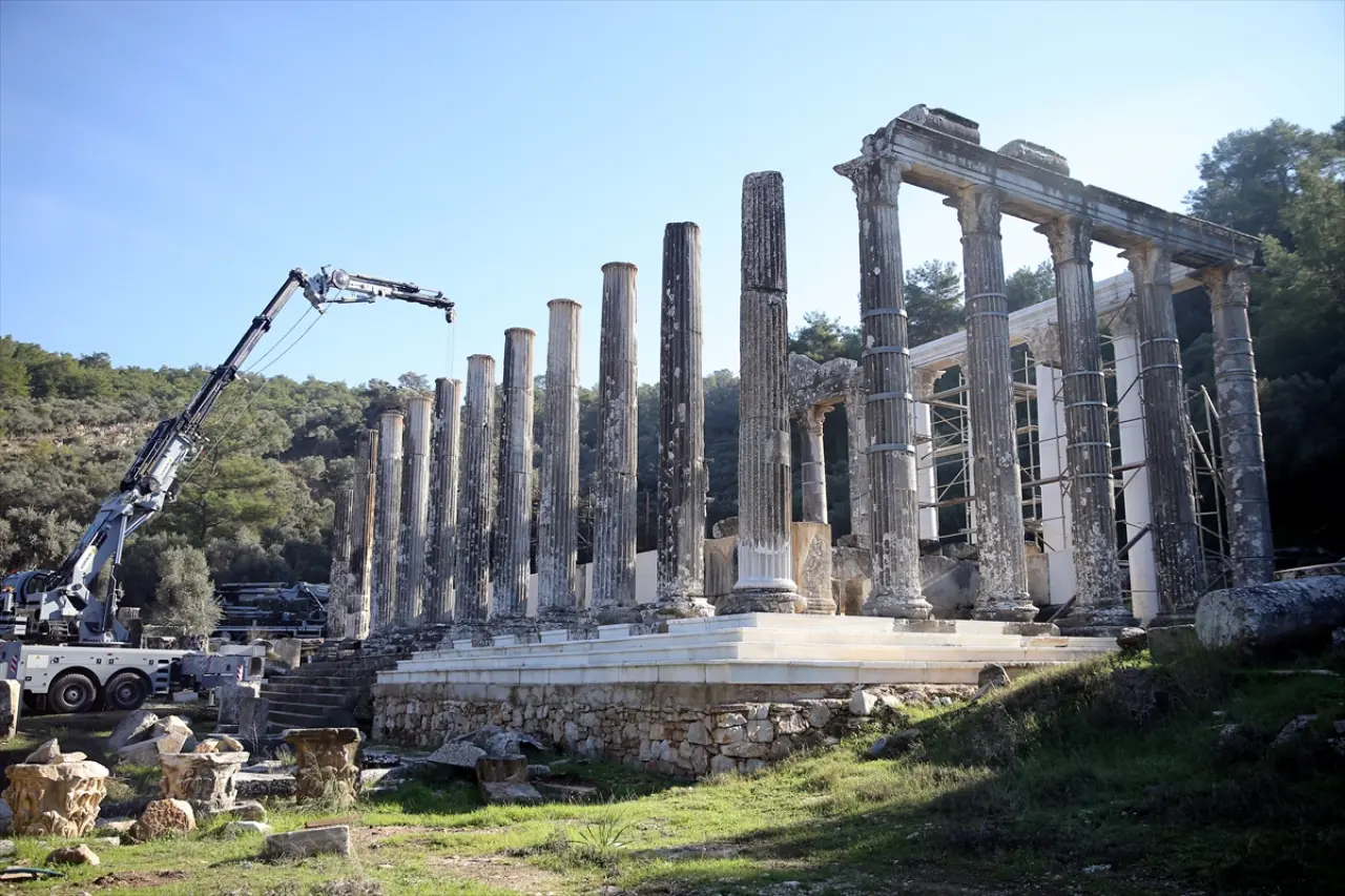 Muğla'nın Milas ilçesinde yer alan Euromos Antik Kenti, tarihinin en kapsamlı restorasyon sürecine tanıklık ediyor. Kültür ve Turizm Bakanlığı tarafından yürütülen çalışmalarda, kentin simgesi olan Zeus Lepsynos Tapınağı'nın zemin ve sütun iyileştirmeleri hız kazandı. MÖ 2. yüzyılda inşa edilen yapının restorasyonunun gelecek yıl bitirilmesi planlanıyor.