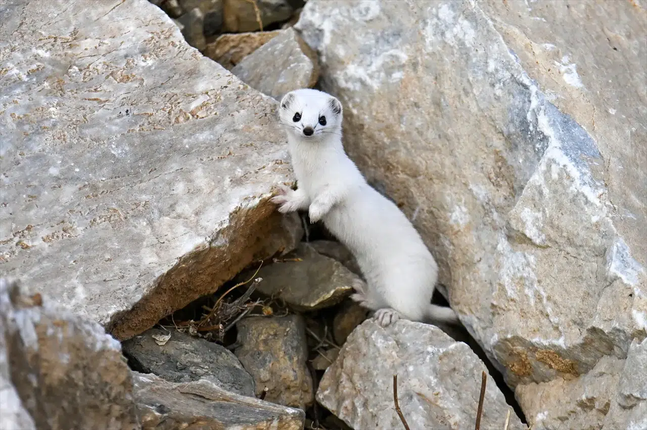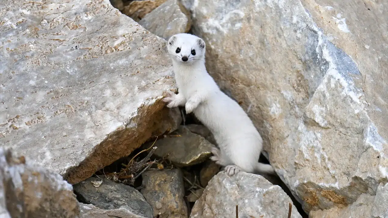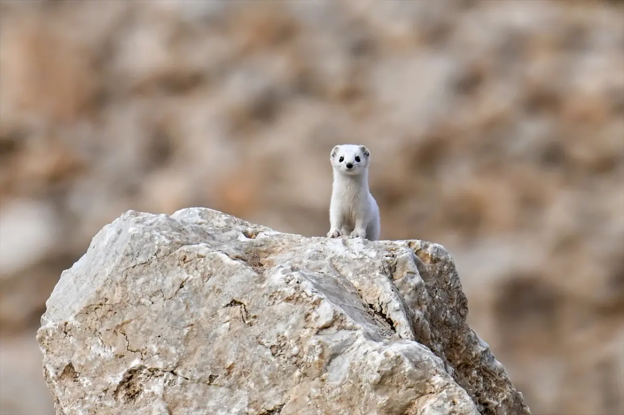 Van'ın zorlu doğa koşullarında, mevsimine göre renk değiştiren ve nadiren gözlemlenebilen beyaz gelincik, Bahçesaray ilçesinde görüntülendi. Yaz aylarında kahverengi olan kürkünün kışın beyaza dönmesiyle dikkat çeken ve nesli koruma altında bulunan bu memeli türü, doğal yaşamda gezerken objektiflere takıldı. Görme, duyma ve koku alma yetenekleri son derece gelişmiş olan gelincik, taşlık alanda kısa bir süre görüldükten sonra gözden kayboldu.