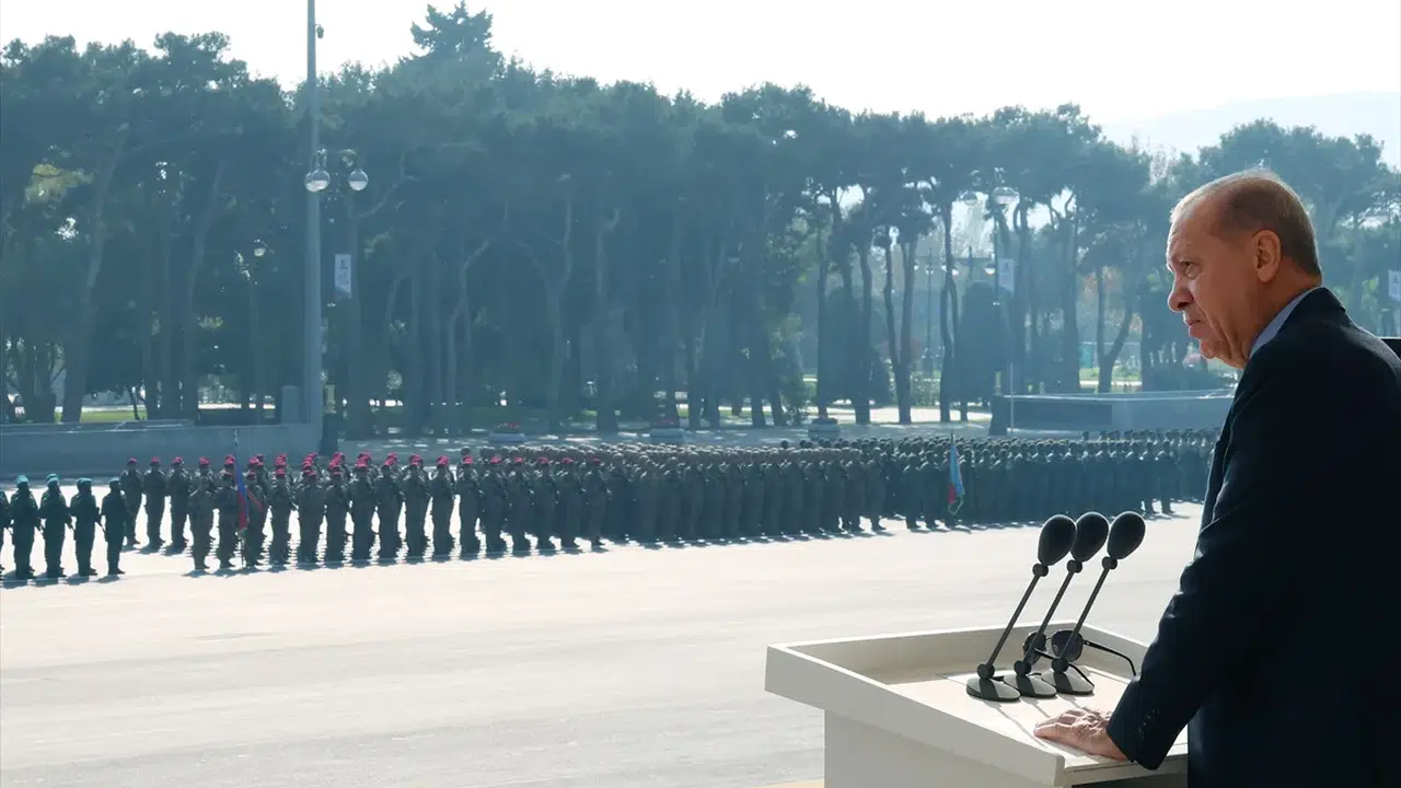 Cumhurbaşkanı Recep Tayyip Erdoğan, Azerbaycan'ın Karabağ Zaferi'nin yıl dönümü olan 8 Kasım Zafer Günü dolayısıyla Bakü'de düzenlenen törende konuştu.