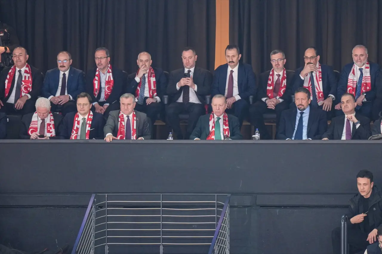 Ay-yıldızlı ekibin Dünya Kupası yolculuğundaki ilk karşılaşmasını Cumhurbaşkanı Recep Tayyip Erdoğan da tribünden takip etti. Millileri yalnız bırakmayan Cumhurbaşkanı Erdoğan'a; Gençlik ve Spor Bakanı Osman Aşkın Bak, MİT Başkanı İbrahim Kalın, TBF Başkanı Hidayet Türkoğlu, AK Parti Sözcüsü Ömer Çelik ile milletvekilleri ve bürokratlardan oluşan geniş bir protokol heyeti eşlik etti.